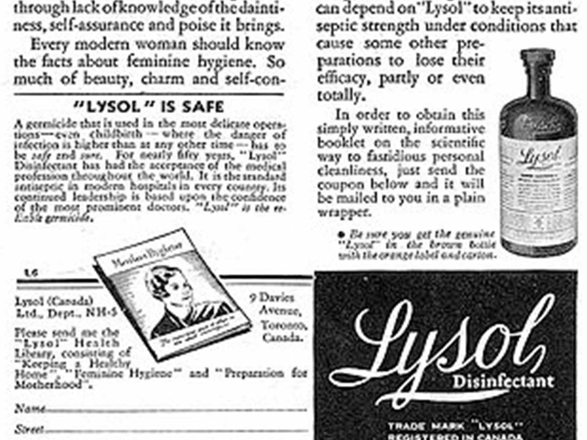 In the 1960s, women that got a “not so fresh” feeling might have grabbed a can Lysol. Advertisements encouraged women to use the chemical for feminine hygiene as well as contraception. They had no idea that it was incredibly dangerous and could lead to injury, infections, and accidental pregnancy (if used as a "contraceptive").