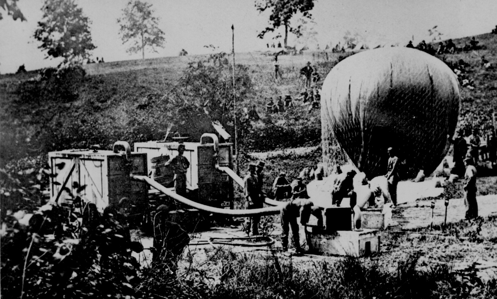 Here, soldiers are seen inflating one of these balloons. This photograph really captures the innovation that was necessary to win the war.