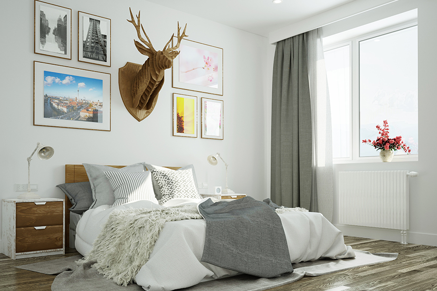With your wall art, it's important to make sure that the type of art coordinates; for example, several framed posters or prints together works nicely. If you have a canvas, place that somewhere on its own (or with a wall mirror).